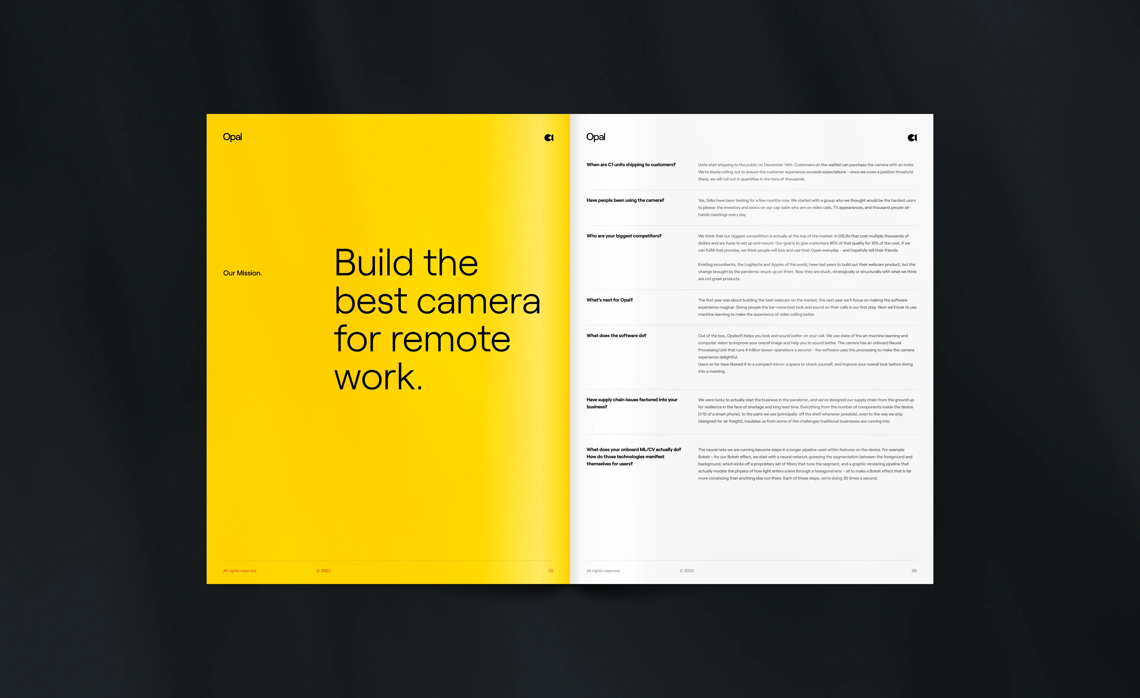 I joined Opal back in 2022. With their first camera starting to roll out to the market, Opal was at a point where it needed to transition from stealth mode and establish itself. This was the moment to humbly and broadly share their philosophy, the people behind the company, and the beliefs that guided them to release a webcam and enter a market that had long been neglected.