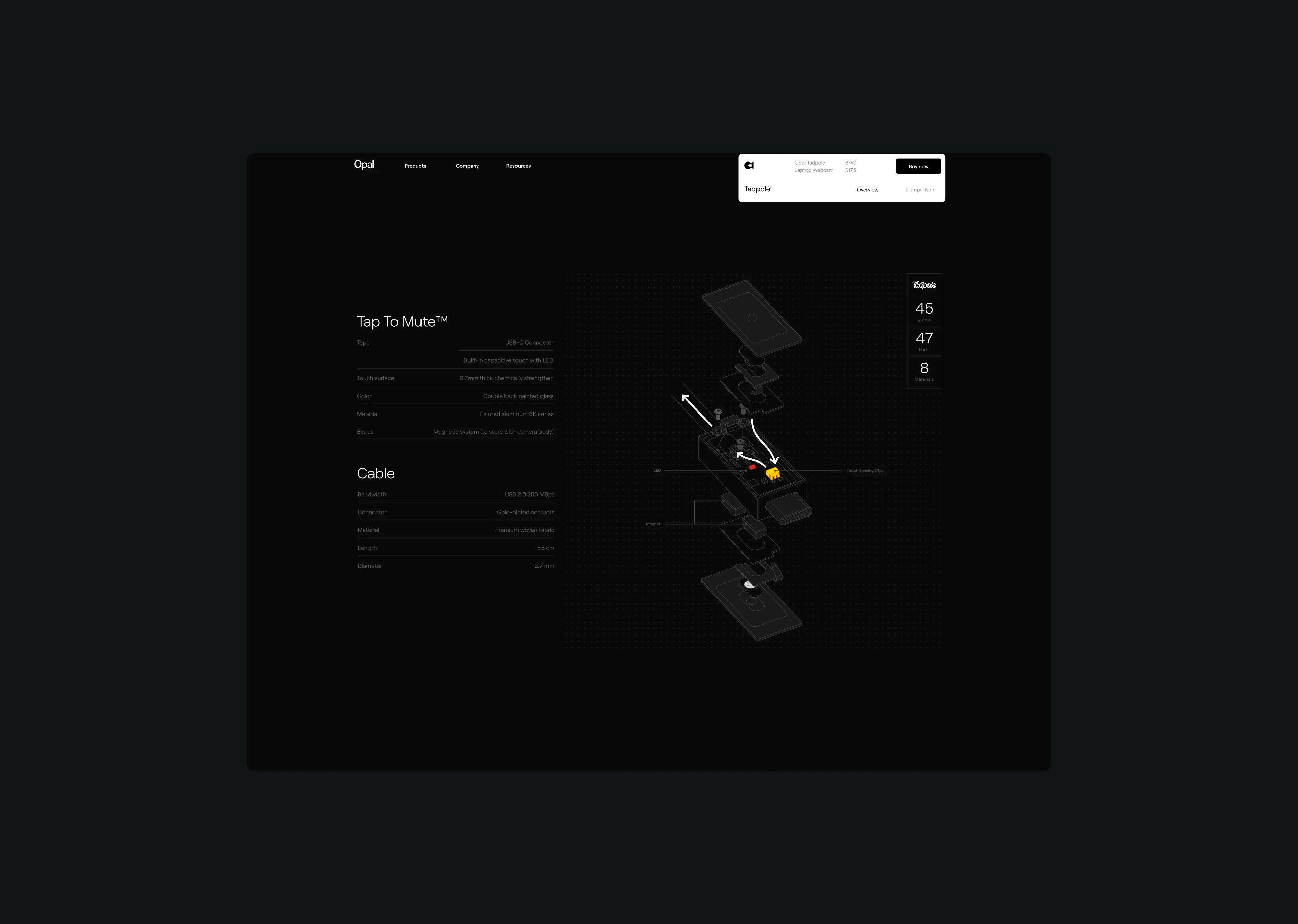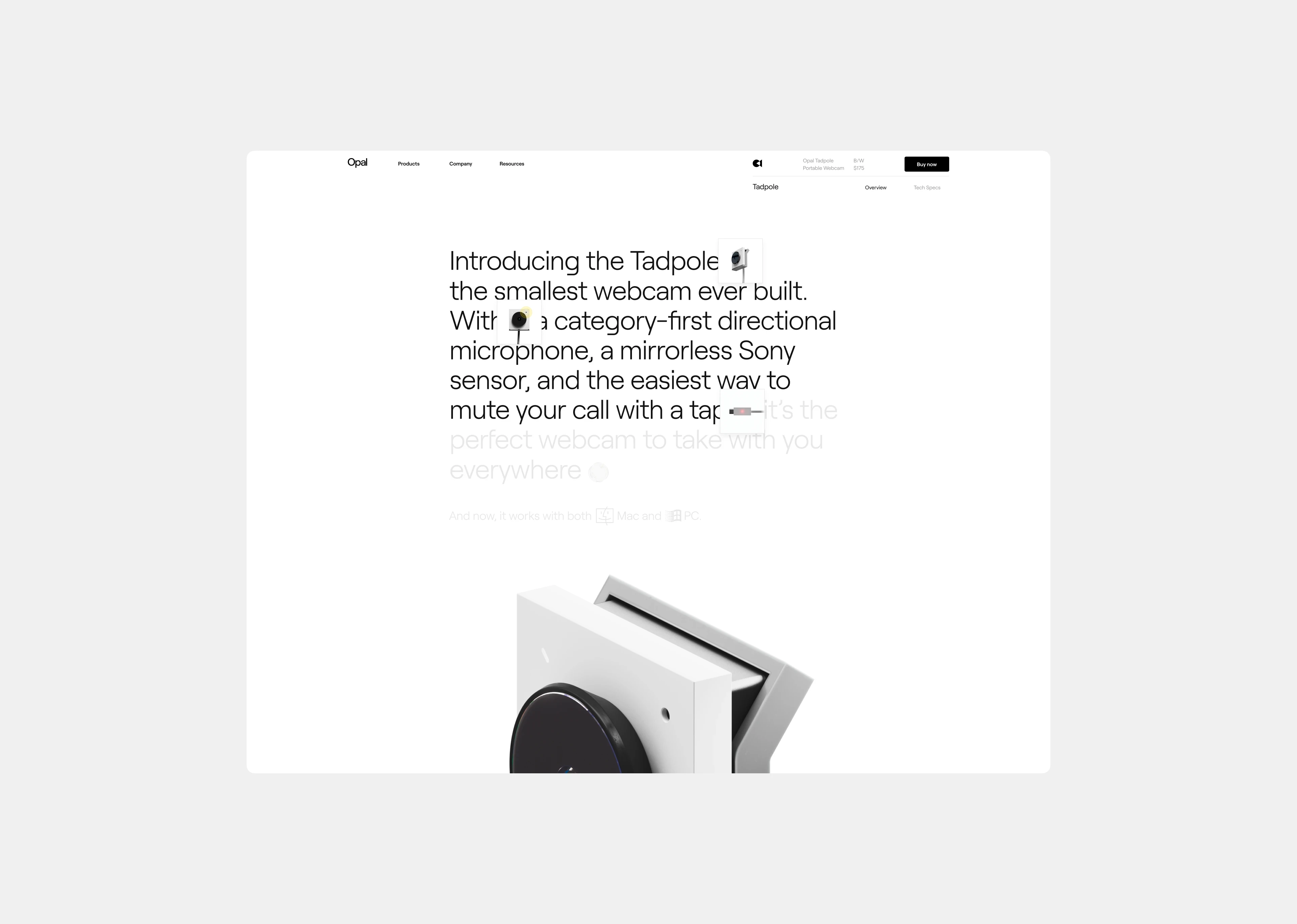 Opal Tadpole is the second hardware launch by Opal Camera, the smallest portable webcam ever built.